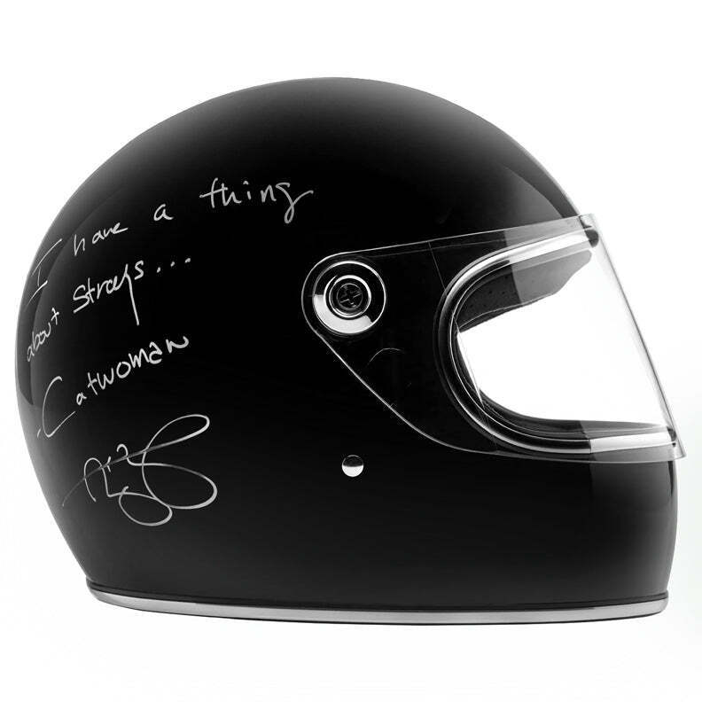 Celebrity Authentics is the exclusive autograph partner of Zoe Kravitz. Please be aware most other autographs purported to be Ms. Kravitz's are forgeries. Ms. Kravitz has only signed with Celebrity Authentics so be sure the item you choose is affixed with the Celebrity Authentics Authentication Hologram for her genuine signature.This Catwoman Selina Kyle Helmet has been personally signed by Zoe Kravitz during her signing with Celebrity Authentics. Direct from Biltwell! This genuine Biltwell motorcycle helmet is the exact make and model worn by Zoe as Catwoman in Matt Reeves' blockbuster film, The Batman. Features include: Injection-molded ABS outer shell is rugged yet lightweight; Three-piece Expanded Polystyrene (EPS) safety liner dissipates impact loads and fortifies helmet structure for a secure fit without compromising comfort; Molded urethane chin bar pad dissipates energy from frontal impacts; Removable/replaceable comfort liner and cheek pads feature brushed fleece Lycra touch points to absorb and evaporate perspiration; Chin strap features brushed fleece Lycra touch points for comfort and an adjustable strap end retainer; Polycarbonate shield includes anti-fog and anti-scratch treatments for safety and durability; Rugged shield hinge hardware with robust detents allows you to open the shield at slow speeds for increased airflow; Molded recesses inside EPS designed to accept various aftermarket audio and communication components.This is the REAL DEAL with Zoe adding a "I have a thing about strays - Catwoman" inscription! Chased by a vengeful criminal, the feds and a gang of otherworldly soldiers, an ex-con and his adopted teenage brother go on the run with a weapon of mysterious origin as their only protection. Ships affixed with Celebrity Authentics serial-numbered Authentication hologram and includes Celebrity Authentics Certificate of Authenticity featuring picture of Zoe signing this beautiful helmet. Please note: with multiples signed by the actor, a sample photo is used from stock to represent what you will receive. Exact autograph size and placement may vary.