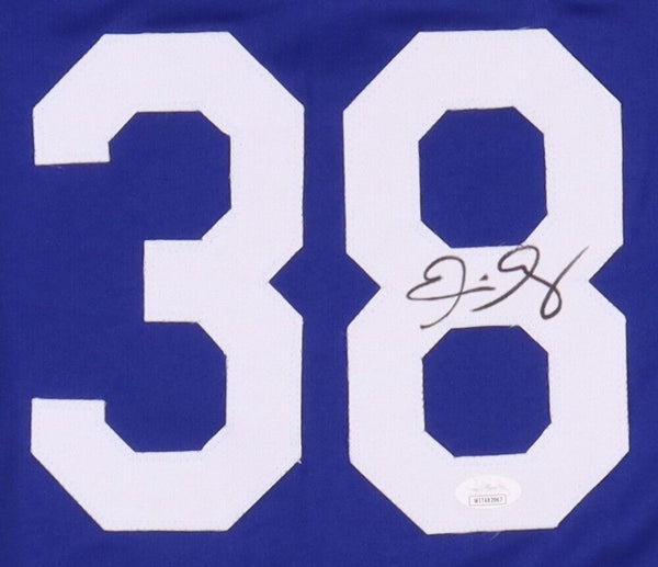 Custom on-field style jersey. Everything sewn on, size XL. Hand-signed in black Sharpie pen by Eric Gagne. The lot / autograph(s) includes an official James Spence Authentication Services serially numbered hologram and matching COA for authenticity purposes.Authentication: JSA COA