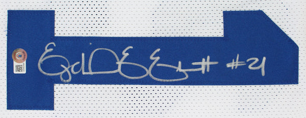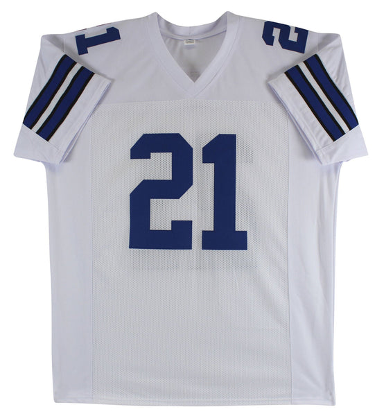This Autographed White Pro Style Jersey has been Personally Signed by Ezekiel Elliott of the Dallas Cowboys. This item is 100% Authentic to include a Certificate of Authenticity (COA) / hologram by Beckett Authentication Services. This is a BAS Witnessed Protection Program item which means a Beckett Authentication Service representative was present when this item was being signed. We conducted an autograph signing with Ezekiel Elliott where multiples of the same item were signed. While the photographs are representative of this item, the size, placement and strength of the signature may vary. Each item is hand signed, therefore, each autograph is unique. This item can be verified through BAS Witnessed. This is a X-Large sized, non-branded, custom-stitched Jersey.
