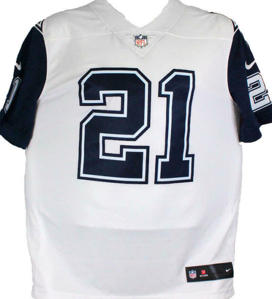 Ezekiel Elliott Autographed Cowboys Color Rush Nike Vapor Jersey-Beckett W Hologram *Silver This is a Ezekiel Elliott hand autographed Nike Vapor Jersey. This item has a Beckett Witnessed Authentication, which comes with a Beckett numbered hologram and a generic Beckett Certificate of Authenticity. You can view this item on the Beckett Authentication website to see when and where it was signed. It was signed either at a public autograph appearance or a private signing. This is a stock photo of the item. Although you may not receive this exact item, the item you receive is virtually identical, brand new, and in great shape. Size L.