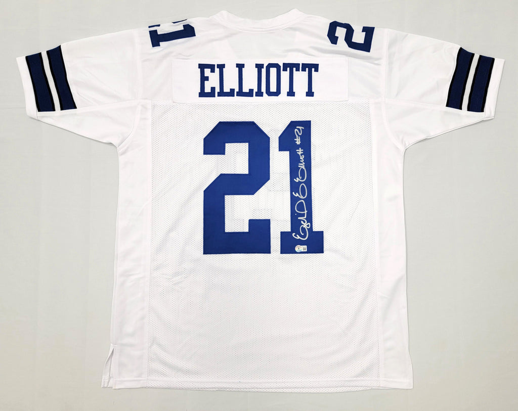 Ezekiel Elliott Autographed Dallas Cowboys Custom White Jersey Beckett Witnessed