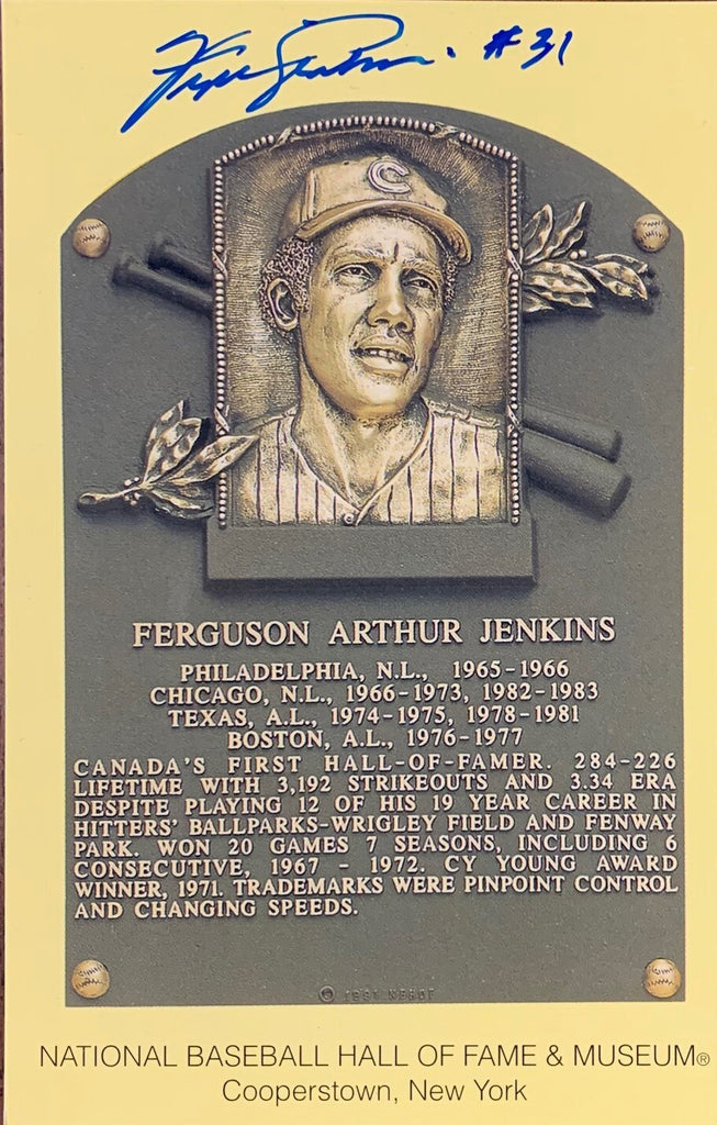 Cubs Hall of Famer FERGIE JENKINS Signed HOF Plaque Post Card AUTO