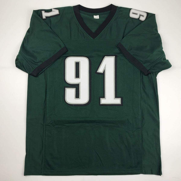 Autographed/Signed FLETCHER COX Philadelphia Green Football Jersey JSA COA Auto This is a custom jersey and was not manufactured by or in any manner associated with any professional sports league or manufacturer. This custom jersey carries no professional sports league designation. The item is intended to be an autographed collectible. Reference of team in the title is to allow the purchaser a point of association. The custom jersey displays the name, number and authenticated signature of the player. This item in no way is affiliated with or connected to any professional sports organization. The autograph, as always is guaranteed to be authentic and has been certified as authentic by a third-party, trusted authenticator. Size is XL unless otherwise noted.