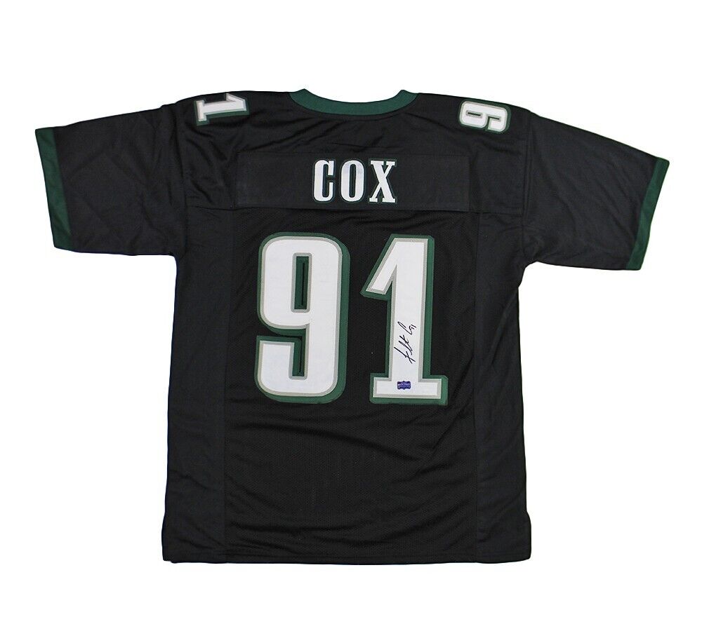 A Philadelphia Custom Black Jersey hand signed by Fletcher Cox. The item and signature are in excellent condition. Fletcher is a former football defensive tackle drafted into the NFL by the Philadelphia Eagles. He is a Super Bowl Champion and a 6x Pro Bowler. AUTHENTICATION: Your item is tagged with a SmarTag Powered by Prova Technology, which gives you digital access to your items authentication records, including a proof picture from the signing.
