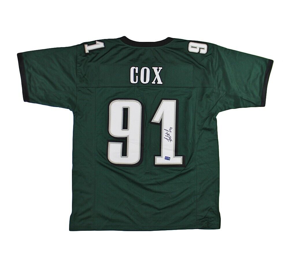 A Philadelphia Custom Green Jersey hand signed by Fletcher Cox. The item and signature are in excellent condition. Fletcher is a former football defensive tackle drafted into the NFL by the Philadelphia Eagles. He is a Super Bowl Champion and a 6x Pro Bowler. AUTHENTICATION: Your item is tagged with a SmarTag Powered by Prova Technology, which gives you digital access to your items authentication records, including a proof picture from the signing.