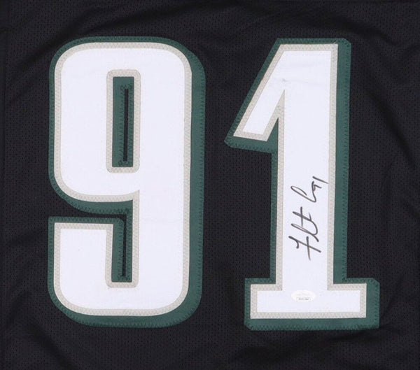 Custom on-field style jersey. Everything is sewn on, size XL. Hand-signed in black felt-tip pen by Fletcher Cox. The lot / autograph(s) includes an official James Spence Authentication (JSA) hologram and matching COA for authenticity purposes. The signing of this item was witnessed by JSA.Authentication: JSA COA
