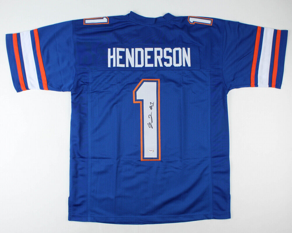 Custom on-field style jersey. Everything sewn on, size XL. Hand-signed by C. J. Henderson. The lot / autograph(s) includes an official PSA/DNA hologram and matching COA for authenticity purposes.Authentication: PSA COA
