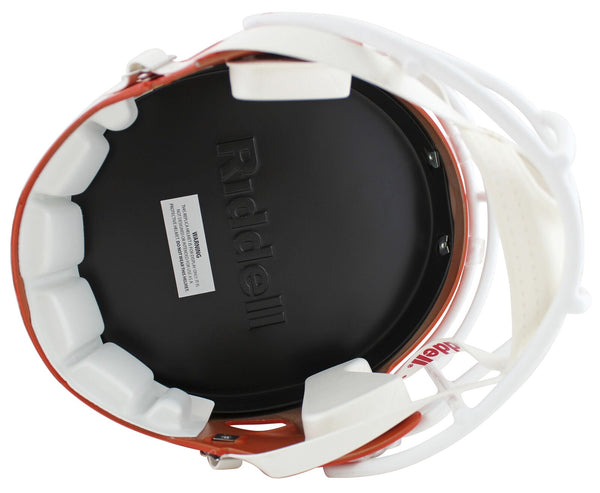 This Autographed Full Size Speed Rep Helmet with the inscription of "The Freak" has been Personally Signed by Jevon Kearse of the Florida Gators. This item is 100% Authentic to include a hologram by Beckett Authentication Services. This item will come with the new Beckett Authentication hologram that has a scannable QR code rather than the traditional COA. If you would like to have a COA, you are welcome to reach out to Beckett for a printed certification once you receive your item. This is a BAS Witnessed Protection Program item which means a Beckett Authentication Service representative was present when this item was being signed. We conducted an autograph signing with Jevon Kearse where multiples of the same item were signed. While the photographs are representative of this item, the size, placement and strength of the signature may vary. Each item is hand signed, therefore, each autograph is unique. This item can be verified through BAS Witnessed.