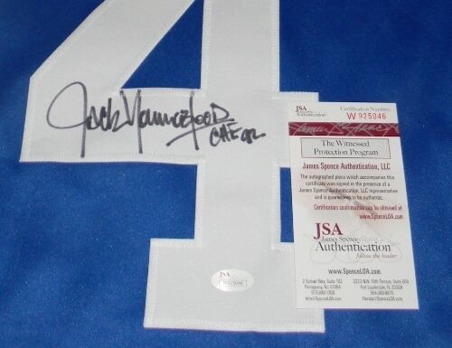 Jack Youngblood, former All-American defensive end for the Florida Gators, has hand signed this custom jersey at a private signing. Jersey is size XL and all letters/numbers are sewn-on. This item comes with a certificate of authenticity (COA) from JSA - James Spence Authentication and was signed in the presence of one of their representatives. You will receive a serial-numbered COA along with a matching serial-numbered sticker on the jersey. The authenticity can be verified online by entering the serial number.Item pictured may not be the exact item you will receive. It will be similar quality, and we guarantee your satisfaction.