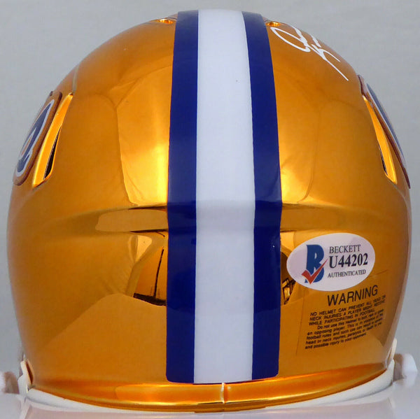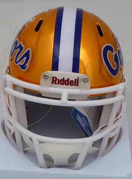 This is a Florida Gators Chrome Speed mini helmet that has been hand signed by Jevon Kearse. It has been authenticated by Beckett (BAS) and comes with their sticker and matching certificate of authenticity.