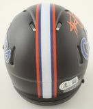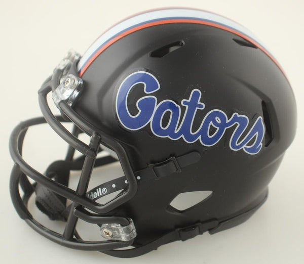 Riddell Florida Gators Blue Speed Mini Helmet. Hand-signed in Gator orange paint pen by Steve Spurrier.The autograph includes an official Beckett Authentication Services serially numbered scannable hologram and QR Code card for authenticity purposes. The signing of this item was witnessed by Beckett.Authentication: Beckett Scannable Hologram with QR Code card