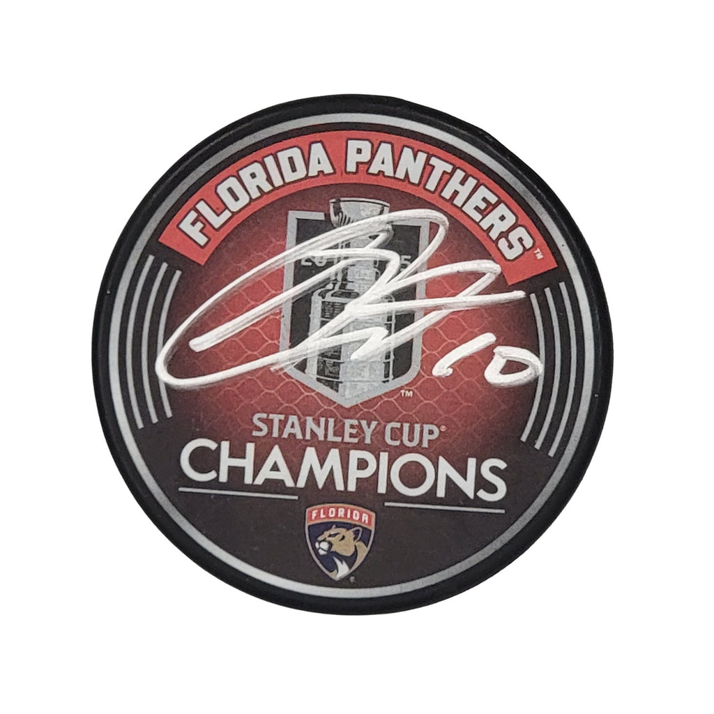 A.J. Greer Signed Florida Panthers 2025 Stanley Cup Champions Hockey Puck JSA