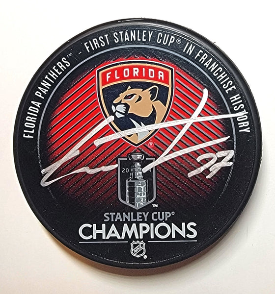 Eetu Luostarinen Signed Florida Panthers 2024 Stanley Cup Champions Puck Beckett