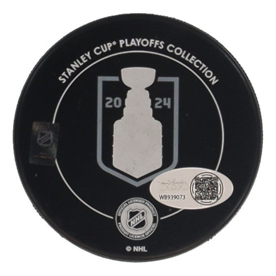 2024 Florida Panthers Stanley Cup Champions Logo Hockey Puck. Hand-signed by Ryan Lomberg.The autograph includes an official James Spence Authentication (JSA) scannable hologram and QR Code card for authenticity purposes. The signing of this item was witnessed by JSA.Authentication: JSA Scannable Hologram with QR Code card