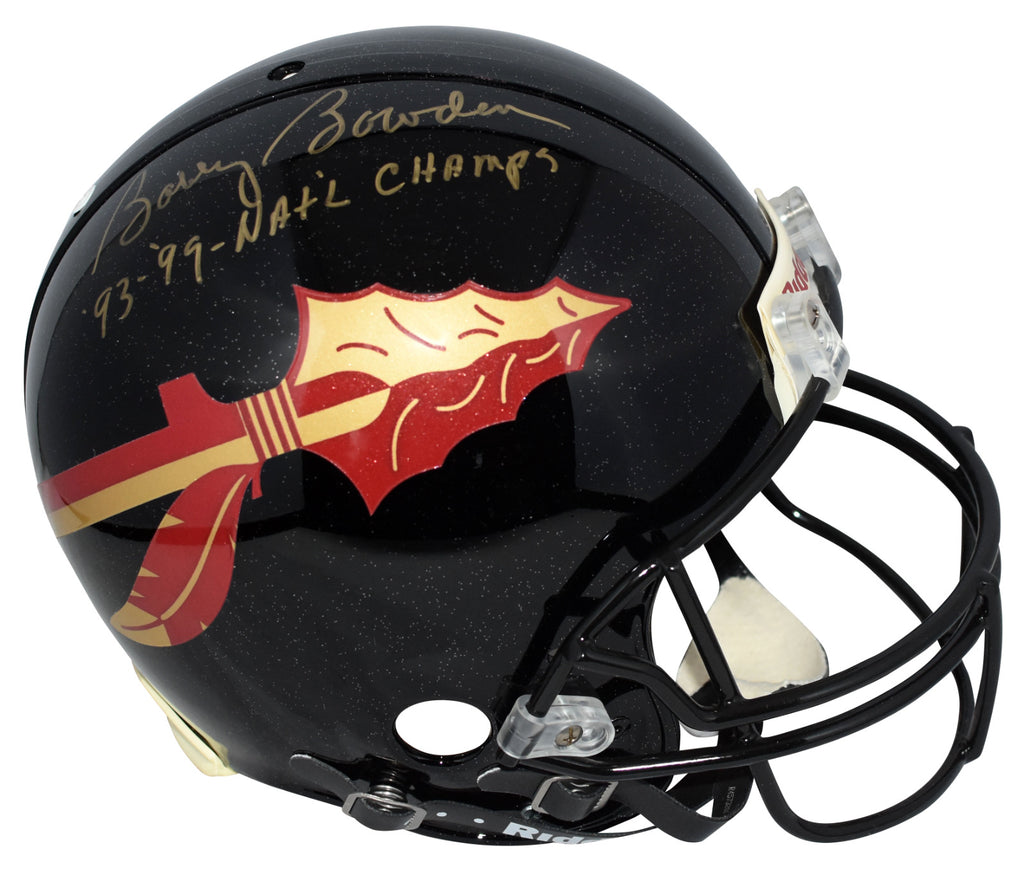 BOBBY BOWDEN SIGNED FLORIDA STATE SEMINOLES BLACK PROLINE HELMET W/ 93 99 CHAMPS
