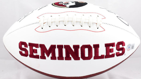 Deion Sanders Autographed Florida State Seminoles Logo Football w/Prime Time- Beckett W Hologram *Black This is a Hand Autographed Football of Deion Sanders of The Florida State University Seminoles. Inscribed Prime Time. This is a Logo Football. This item has a Beckett Witness Authentication, which Comes with a #'ed Sticker hologram and a QR code for verification. You can view this item on the Beckett website and it shows when and where the item was signed. It was signed either at a public autograph appearance or a Private Signing. This is a stock photo of the item. Although you may not receive this exact item, the item you receive is virtually identical and brand new in great shape.