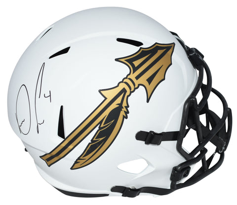 Kelvin Benjamin Autographed F/S Seminoles Gold Matte Schutt Helmet- JSA W Auth This is a Hand Autograph of Kelvin Benjamin of The Florida State Seminoles. This is a Schutt Football Full Size Replica Helmet. This item has a James Spence Witness Authentication, which comes with a JSA #'ed sticker and a matching JSA COA. You can view this item on the SpenceLOA website and it shows when and where the item was signed. It was signed either at a public autograph appearance or a private signing. This is a stock photo of the item. Although you may not receive this exact item, the item you receive is virtually identical and brand new in great shape.