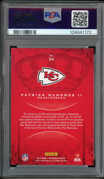 2017 Panini Crown Royale #84 Patrick Mahomes RC Rookie On Card PSA 9/10 Auto