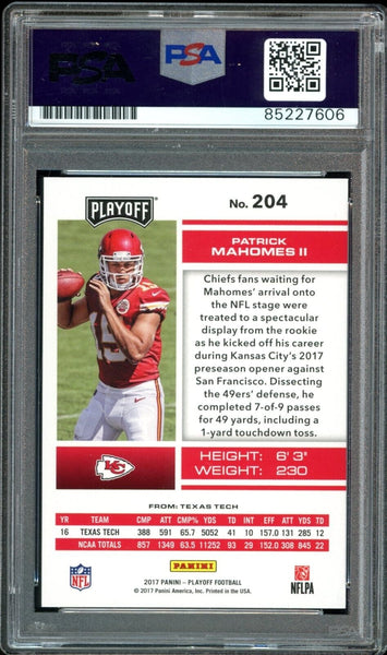 2017 Panini Playoff #204 Patrick Mahomes RC On Card PSA/DNA Auto GEM MINT 10
