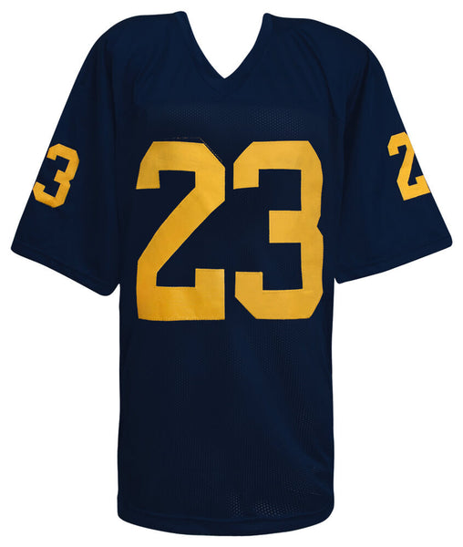 2023 Michigan Team signed navy custom college football jersey. The jersey is signed by 11 members of the 2023 National Championship Michigan Wolverines team. Signatures include: J.J. McCarthy, Tommy Doman, Ja'Den McBurrows, Greg Crippen, Zeke Berry, Keshaun Harris, Giovanni El-Hadi, T.J. Guy, Joe Taylor, Jimmy Rolder, and Amorion Walker. Item comes with a Beckett Authentication tamper evident numbered sticker and matching Certificate of Authenticity which can be verified online.