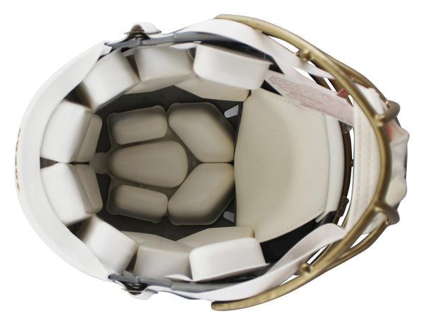 This Autographed Alternate Slate Riddell Full Size Speed Proline Helmet W/ Uv Mirrored Back Acrylic Display Case has been Personally Signed by Christian McCaffrey of the San Francisco 49ers. This item is 100% Authentic to includes a numbered hologram by Fanatics. We conducted an autograph signing with Christian McCaffrey where multiples of the same item were signed. While the photographs are representative of this item, the size, placement and strength of the signature may vary. Each item is hand signed, therefore, each autograph is unique. This item can be verified through Fanatics.