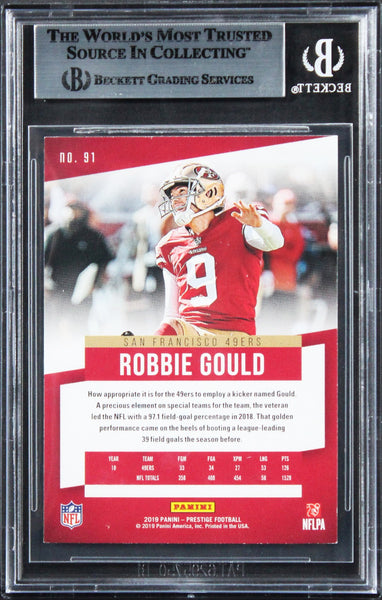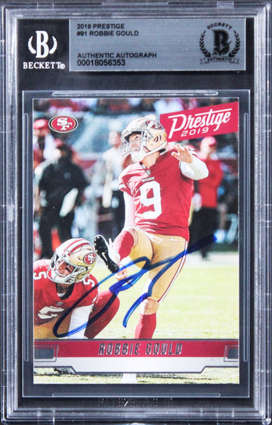 This Autographed 2019 Prestige #91 Card has been Personally Signed by Robbie Gould of the San Francisco 49ers. This item is 100% Authentic, it comes slabbed and authenticated by Beckett Authentication Services. The authenticity can be verified on Beckett Authentication Services website.