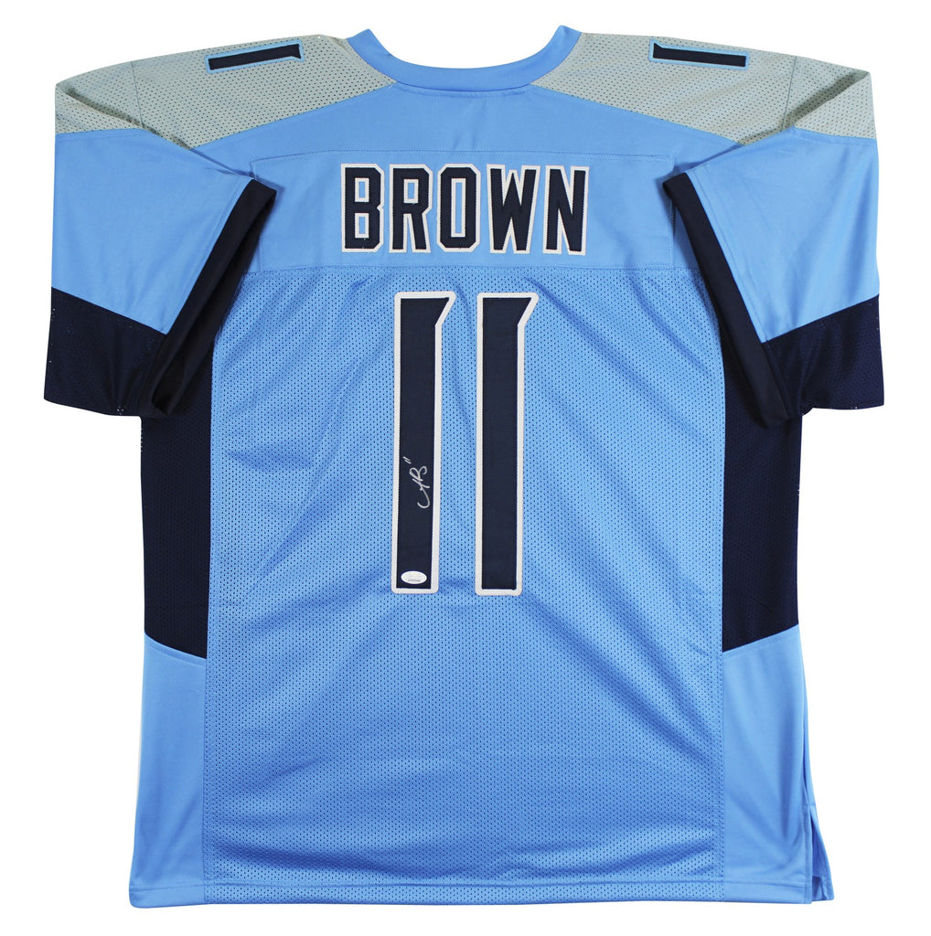 This Autographed Light Blue Pro Style Jersey has been Personally Signed by A.J. Brown of the Tennessee Titans. This item is 100% Authentic to include a Certificate of Authenticity (COA) / hologram by JSA Witness. This is a JSA Witnessed Protection Program item which means a JSA representative was present when this item was being signed. The authenticity can be verified on JSA website. This is a X-Large sized, non-branded, custom-stitched Jersey.