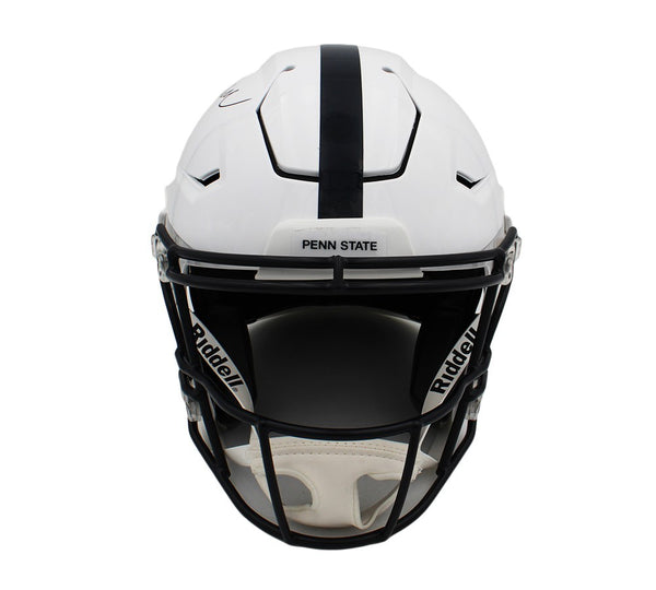 A Penn State Nittany Lions Speed Flex Authentic NCAA Helmet hand signed by Abdul Carter. The item and signature are in excellent condition. Abdul Carter is a standout linebacker for the Penn State Nittany Lions. Known for his speed, physicality, and disruptive playmaking, he quickly emerged as one of the top defenders in the Big Ten. AUTHENTICATION: The item is accompanied by a Beckett Serial Numbered & Databased Hologram