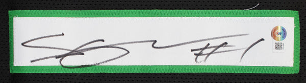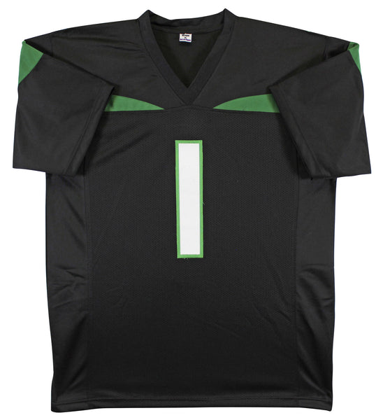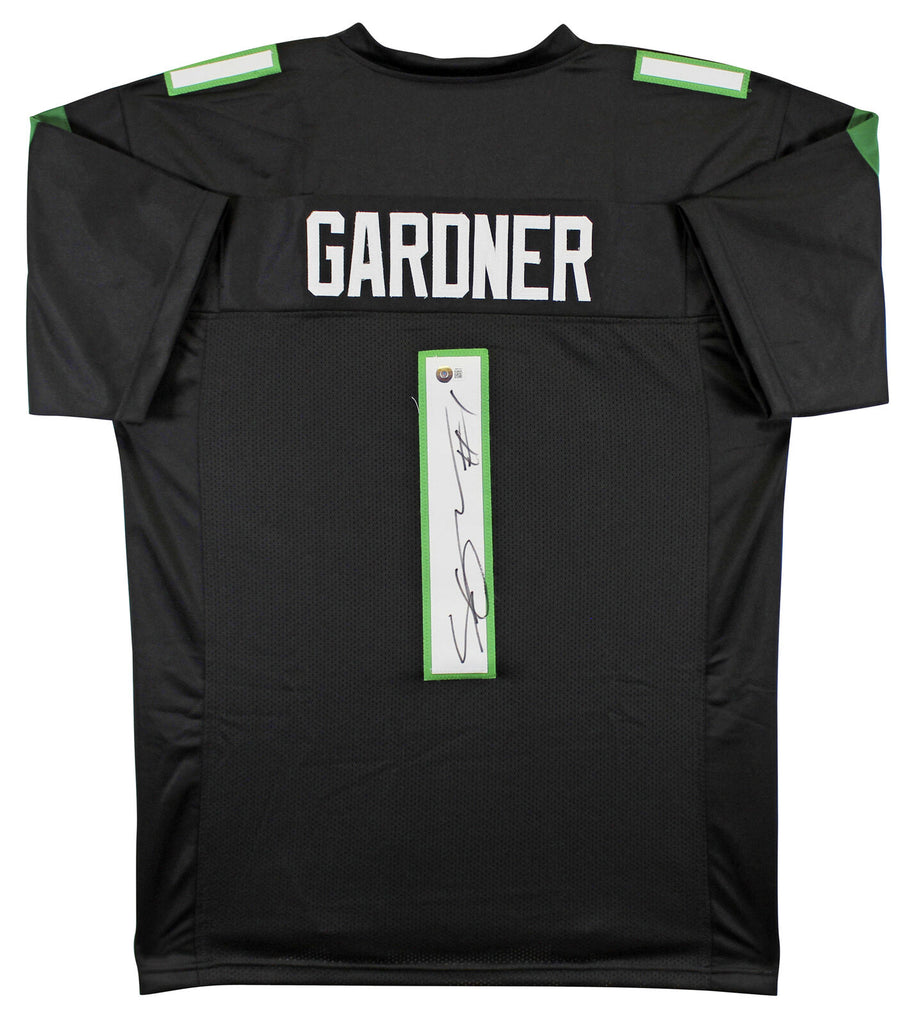 This Autographed Black Pro Style Jersey has been Personally Signed by Ahmad "Sauce" Gardner of the New York Jets. This item is 100% Authentic to include a hologram by Beckett Authentication Services. This item will come with an affixed Beckett Authentication Services (BAS) authentication sticker, which includes a scannable QR code to verify authenticity. Please note that Beckett no longer provides serial-numbered COA cards, and the attached BAS sticker will serve as the complete authentication for this item. This is a BAS Witnessed Protection Program item which means a Beckett Authentication Service representative was present when this item was being signed. We conducted an autograph signing with Ahmad "Sauce" Gardner where multiples of the same item were signed. While the photographs are representative of this item, the size, placement and strength of the signature may vary. Each item is hand signed, therefore, each autograph is unique. This item can be verified through BAS Witnessed. This is a X-Large sized, non-branded, custom-stitched Jersey.