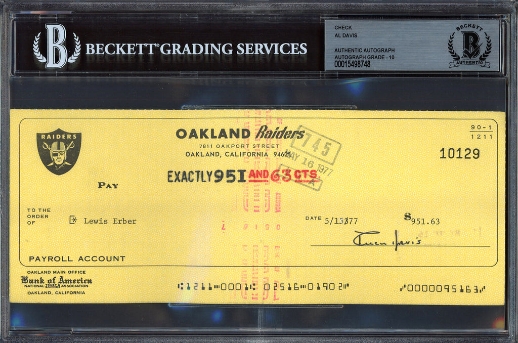 Al Davis Autographed Signed Check Raiders Owner Gem 10 Auto Beckett #15498748