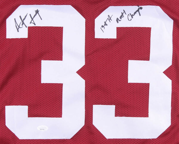 Custom on-field stye jersey. Everything is sewn on, size XL. Has been hand-signed and inscribed in black felt-tip pen by Anfernee Jennings. The autograph(s) includes an official James Spence Authentication (JSA) "Signature Debut" hologram and COA. "Signature Debut" is the autographed memorabilia equivalent to a rookie card. The JSA definition of a "Signature Debut" is as follows: "Any item that is autographed and received by JSA prior to the last game of the signer's official rookie season.Authentication: JSA Signature Debut COA