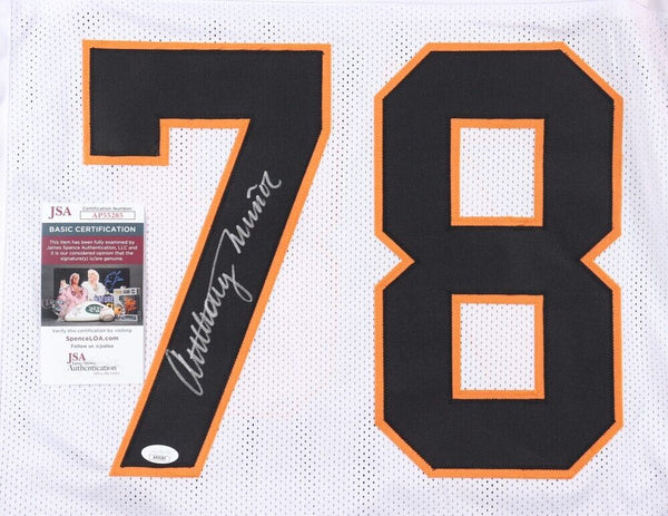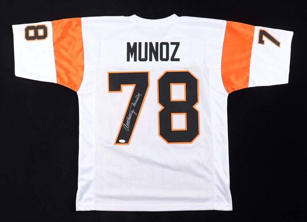Custom on field style jersey with everything sewn on, size adult XL. Hand-signed by Anthony Munoz (HOF).The autograph(s) includes an official James Spence Authentication (JSA) hologram and matching COA for authenticity purposes.Authentication: JSA COA