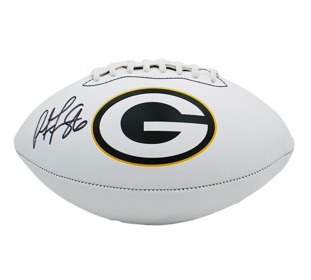 A Green Bay Packers Embroidered White NFL Football hand signed by Antonio Freeman. The item and signature are in excellent condition. Antonio Freeman is a former professional American football wide receiver, best known for his time with the Green Bay Packers in the NFL. Freeman played college football at Virginia Tech before being drafted by the Packers in 1995. He became a key player for the Packers during their Super Bowl XXXI victory and earned two Pro Bowl selections. AUTHENTICATION: Your item is tagged with a SmarTag powered by Prova Technology, which gives you digital access to your items authentication records, which includes a proof picture from the signing.