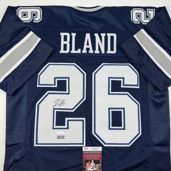 Autographed/Signed Daron Bland Dallas Blue Football Jersey JSA COA Jersey has no brand names or logos. This is a custom jersey and was not manufactured by or in any manner associated with any professional sports league or manufacturer. This custom jersey carries no professional sports league designation. The item is intended to be an autographed collectible. The custom jersey displays the name and number of the player. This item in no way is affiliated with or connected to any professional sports organization. Size is XL.