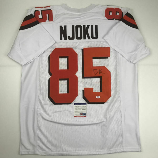 Autographed/Signed DAVID NJOKU Cleveland White Football Jersey PSA/DNA COA Auto This is a custom jersey and was not manufactured by or in any manner associated with any professional sports league or manufacturer. This custom jersey carries no professional sports league designation. The item is intended to be an autographed collectible. Reference of team in the title is to allow the purchaser a point of association. The custom jersey displays the name, number and authenticated signature of the player. This item in no way is affiliated with or connected to any professional sports organization. The autograph, as always is guaranteed to be authentic and has been certified as authentic by a third-party, trusted authenticator. Size is XL unless otherwise noted.