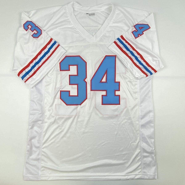 Autographed/Signed EARL CAMPBELL Houston White Football Jersey Beckett BAS COA This is a custom jersey and was not manufactured by or in any manner associated with any professional sports league or manufacturer. This custom jersey carries no professional sports league designation. The item is intended to be an autographed collectible. Reference of team in the title is to allow the purchaser a point of association. The custom jersey displays the name, number and authenticated signature of the player. This item in no way is affiliated with or connected to any professional sports organization. The autograph, as always is guaranteed to be authentic and has been certified as authentic by a third-party, trusted authenticator. Size is XL unless otherwise noted.