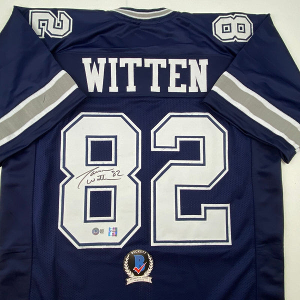 Autographed/Signed Jason Witten Dallas Dark Blue Football Jersey Beckett COA This is a custom jersey and was not manufactured by or in any manner associated with any professional sports league or manufacturer. This custom jersey carries no professional sports league designation. The item is intended to be an autographed collectible. Reference of team in the title is to allow the purchaser a point of association. The custom jersey displays the name, number and authenticated signature of the player. This item in no way is affiliated with or connected to any professional sports organization. The autograph, as always is guaranteed to be authentic and has been certified as authentic by a third-party, trusted authenticator. Size is XL unless otherwise noted.