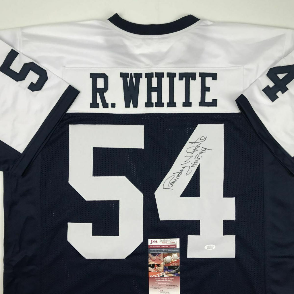 Autographed/Signed RANDY WHITE HOF 94 Dallas Thanksgiving Day Jersey JSA COA This is a custom jersey and was not manufactured by or in any manner associated with any professional sports league or manufacturer. This custom jersey carries no professional sports league designation. The item is intended to be an autographed collectible. Reference of team in the title is to allow the purchaser a point of association. The custom jersey displays the name, number and authenticated signature of the player. This item in no way is affiliated with or connected to any professional sports organization. The autograph, as always is guaranteed to be authentic and has been certified as authentic by a third-party, trusted authenticator. Size is XL unless otherwise noted.