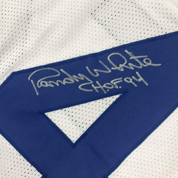 Autographed/Signed Randy White HOF 94 Dallas White Football Jersey JSA COA This is a custom jersey and was not manufactured by or in any manner associated with any professional sports league or manufacturer. This custom jersey carries no professional sports league designation. The item is intended to be an autographed collectible. Reference of team in the title is to allow the purchaser a point of association. The custom jersey displays the name, number and authenticated signature of the player. This item in no way is affiliated with or connected to any professional sports organization. The autograph, as always is guaranteed to be authentic and has been certified as authentic by a third-party, trusted authenticator. Size is XL unless otherwise noted.