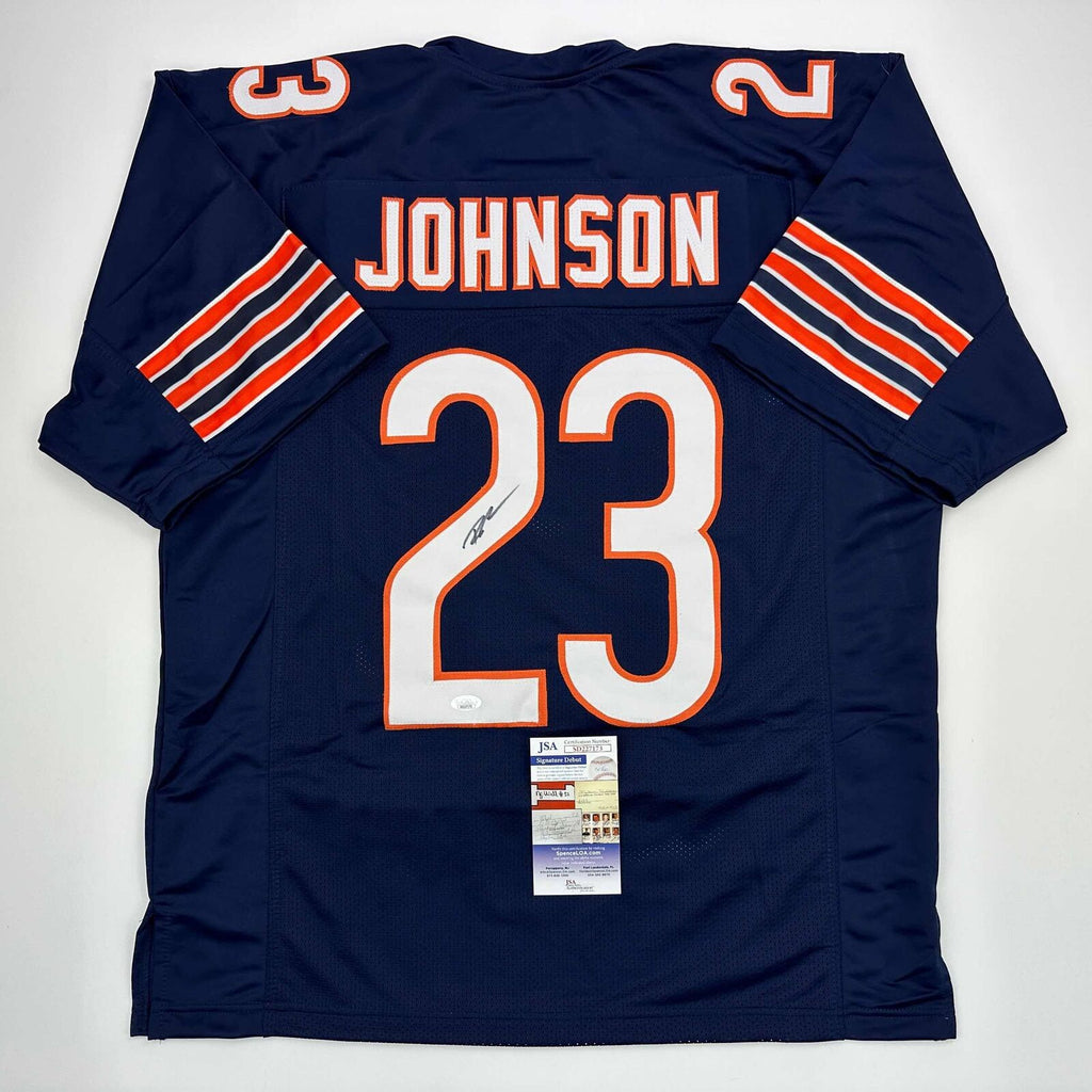 Autographed/Signed Roschon Johnson Chicago Blue Football Jersey JSA COA Jersey has no brand names or logos. This is a custom jersey and was not manufactured by or in any manner associated with any professional sports league or manufacturer. This custom jersey carries no professional sports league designation. The item is intended to be an autographed collectible. The custom jersey displays the name and number of the player. This item in no way is affiliated with or connected to any professional sports organization. Size is XL.