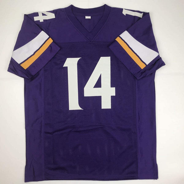 Autographed/Signed Stefon Diggs Minnesota Purple Football Jersey Beckett BAS COA Jersey has no brand names or logos. This is a custom jersey and was not manufactured by or in any manner associated with any professional sports league or manufacturer. This custom jersey carries no professional sports league designation. The item is intended to be an autographed collectible. The custom jersey displays the name and number of the player. This item in no way is affiliated with or connected to any professional sports organization. Size is XL.