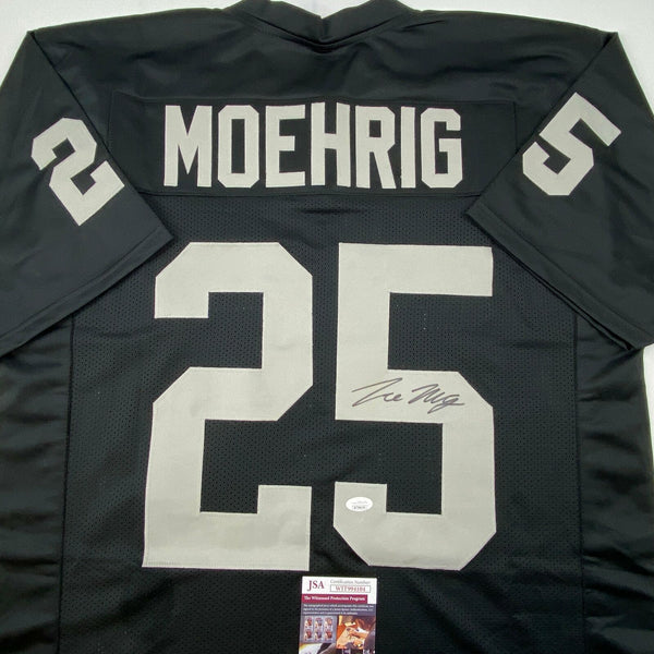 Autographed/Signed Trevon Moehrig Las Vegas Oakland Black Jersey JSA COA Jersey has no brand names or logos. This is a custom jersey and was not manufactured by or in any manner associated with any professional sports league or manufacturer. This custom jersey carries no professional sports league designation. The item is intended to be an autographed collectible. The custom jersey displays the name and number of the player. This item in no way is affiliated with or connected to any professional sports organization. Size is XL.