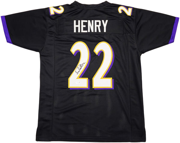 This is a Black Jersey that has been hand signed by Derrick Henry. This is a custom jersey with no name brand. The approximate size is XL. It has nice sewn in name and numbers. This item has been witnessed and certified authentic by Beckett Authentication (BAS) and comes with their tamper-proof witness sticker.