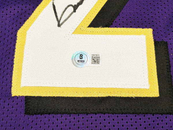 This is a Purple Jersey that has been hand signed by Derrick Henry. This is a custom jersey with no name brand. The approximate size is XL. It has nice sewn in name and numbers. This item has been witnessed and certified authentic by Beckett Authentication (BAS) and comes with their tamper-proof witness sticker.