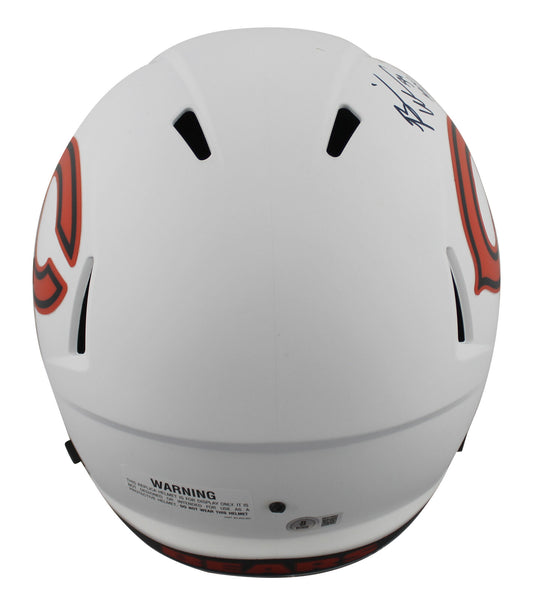 This Autographed Alternate Lunar Riddell Full Size Speed Rep Helmet W/ Uv Mirrored Back Acrylic Display Case with the inscription of "HOF 18" has been Personally Signed by Brian Urlacher of the Chicago Bears. This item is 100% Authentic to include a hologram by Beckett Authentication Services. This item will come with an affixed Beckett Authentication Services (BAS) authentication sticker, which includes a scannable QR code to verify authenticity. Please note that Beckett no longer provides serial-numbered COA cards, and the attached BAS sticker will serve as the complete authentication for this item. This is a BAS Witnessed Protection Program item which means a Beckett Authentication Service representative was present when this item was being signed. We conducted an autograph signing with Brian Urlacher where multiples of the same item were signed. While the photographs are representative of this item, the size, placement and strength of the signature may vary. Each item is hand signed, therefore, each autograph is unique. This item can be verified through BAS Witnessed.