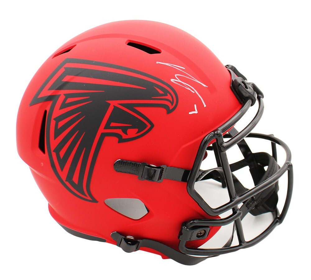 An Atlanta Falcons Speed Replica Rave NFL Helmet hand signed by Bijan Robinson. The item and signature are in excellent condition. Bijan is a football running back for the Atlanta Falcons. He played college football for the Texas Longhorns. AUTHENTICATION: Your item is tagged with a SmarTag Powered by Prova Technology, which gives you digital access to your items authentication records, including a proof picture from the signing.