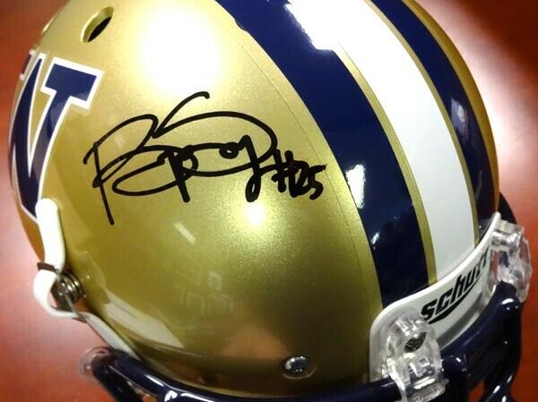 This is a Schutt UW full size Authentic helmet that has been hand signed by Bishop Sankey. It comes with a custom tamper-evident serial numbered hologram and Certificate of Authenticity from our company, Mill Creek Sports.