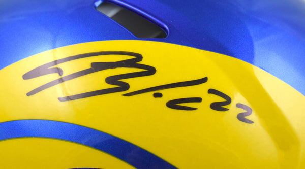 This is a hand autograph of Blake Corum of the Los Angeles Rams on a Riddell Football Full Size Speed Authentic Helmet. This item has a Becket Witnessed Authentication, which comes with a numbered hologram and a QR code for verification. You can view this item on the Beckett Authentication website. It was signed either at a public autograph appearance or a private signing. This is a stock photo of the item. Although you may not receive this exact item, the item you receive is virtually identical and brand new in great shape. This is a hand autograph of Blake Corum of the Los Angeles Rams on a Riddell Football Full Size Speed Authentic Helmet. This item has a Becket Witnessed Authentication, which comes with a numbered hologram and a QR code for verification. You can view this item on the Beckett Authentication website. It was signed either at a public autograph appearance or a private signing. This is a stock photo of the item. Although you may not receive this exact item, the item you receive is virtually identical and brand new in great shape.