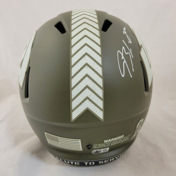 BLAKE CORUM AUTOGRAPHED / SIGNED LOS ANGELES RAMS FULL SIZE SALUTE TO SERVICE (STS) SPEED REPLICA HELMET BECKETT QR CODE HOLOGRAM COA