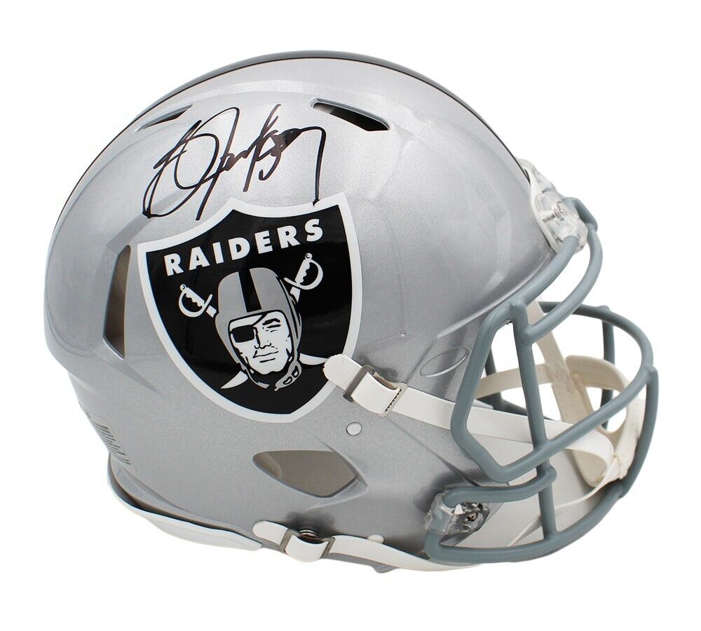 An Los Angeles Raiders Speed Authentic NFL Helmet hand signed by Bo Jackson. The item and signature are in excellent condition. Bo was named an All-Star in both baseball and football, and one of few to do so in two major sports. He is widely considered one of the greatest athletes of all time. AUTHENTICATION: The item is accompanied by a Beckett Serial Numbered & Databased Hologram